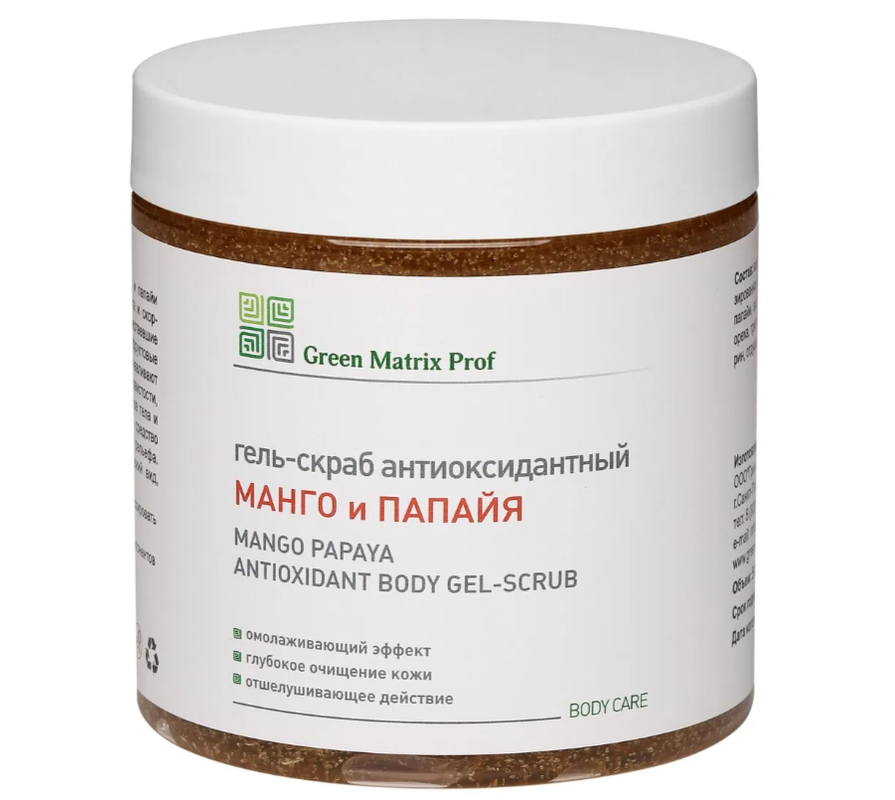 Скраб для тела омолаживающий с экстрактами манго и папайи содержит отшелушивающие микрогранулы керамогранита и скорлупы миндального ореха, которые мягко удаляют омертвевшие клетки и помогают улучшить текстуру кожи. Осветляющие фруктовые экстракты и питательные витамины мгновенно восстанавливают внешний вид кожи, создавая ощущение мягкости и шелковистости, повышая упругость кожи, способствуя улучшению контуров тела и борьбе с несовершенствами. Мягкое отшелушивающее средство обеспечивает глубокое очищение кожи, выравнивание рельефа. Кожа нежно очищается, приобретает обновленный, свежий вид, разглаживается. Активные компоненты: