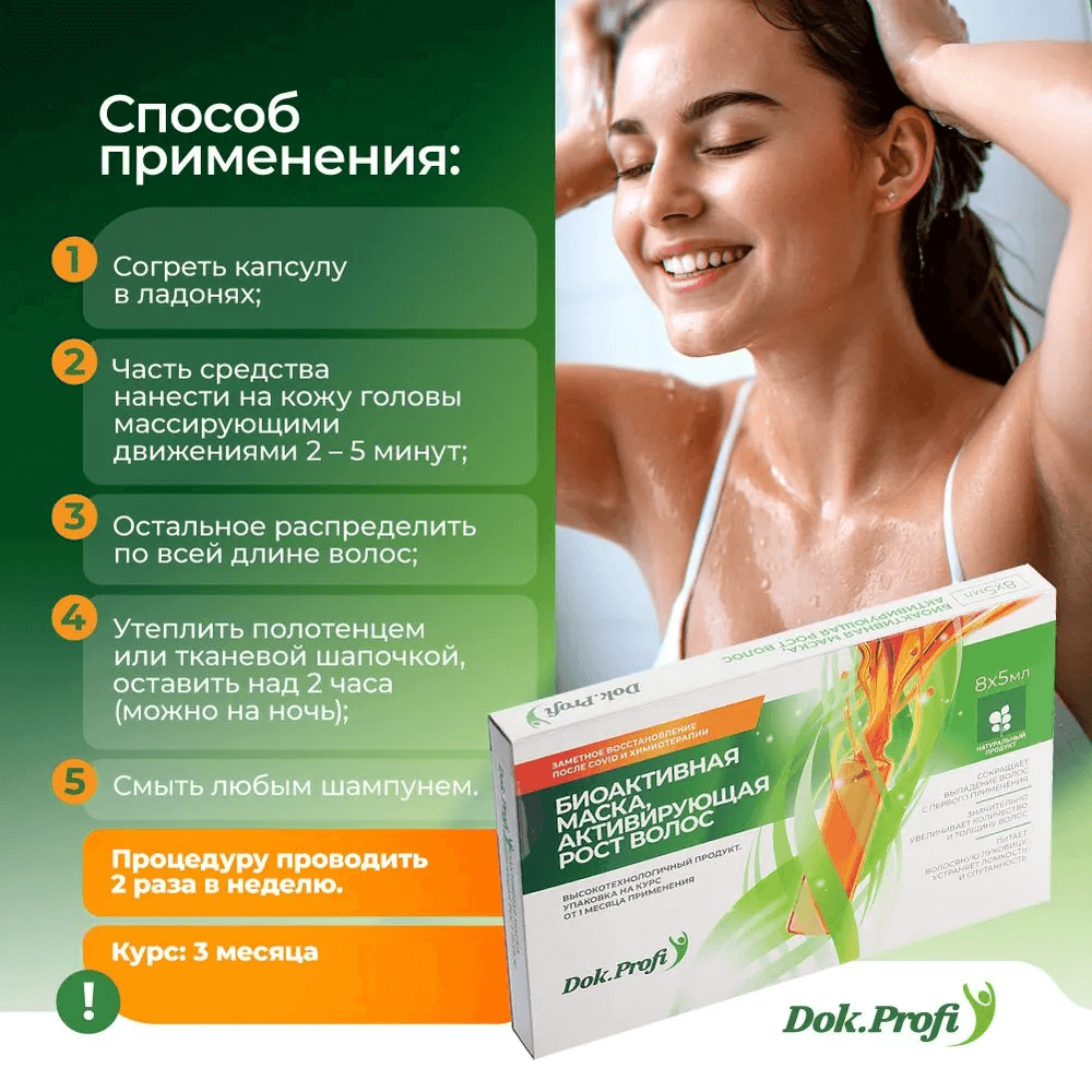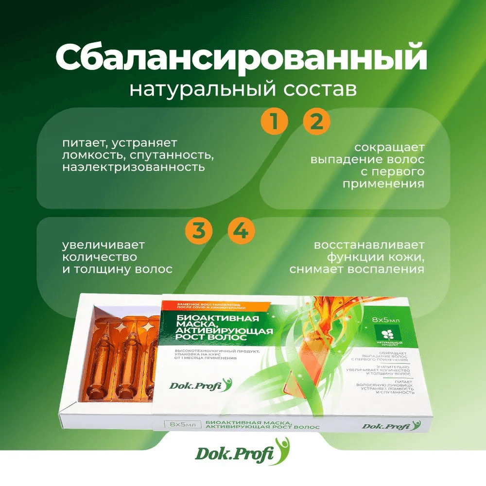 Биоактивная питательная маска для роста и густоты волос. активирует рост волос, эффективно восстанавливает рост волос у людей, перенесших covid, прошедших процедуры химиотерапии, радиотерапии и курсы антибиотиков. маска увеличивает толщину волоса и количество волос. от выпадения волос на любой стадии. эффективная маска от выпадения волос, образования залысин и широких проборов, от облысения, питает волосяную луковицу, кожу головы, увеличивает количество и толщину волос. для лечения волос. лечебная натуральная косметика без химических и раздражающих компонентов.